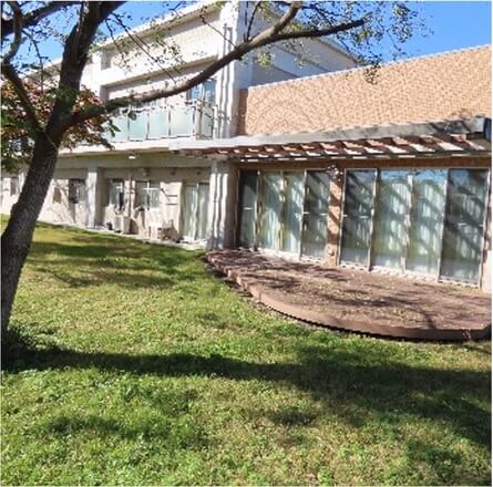 越川副園長:「子どもたちの部屋は全室南向きで、窓からは庭の桜の木が見えるなど、景観の良い環境です。設計士と相談して設けた吹き抜けは、採光と館内の空気の循環を良くする役割を果たしています。」